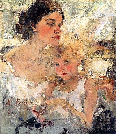 Mrs. Fechin and her Daughter, Created 1922 - Nicolai Fechin